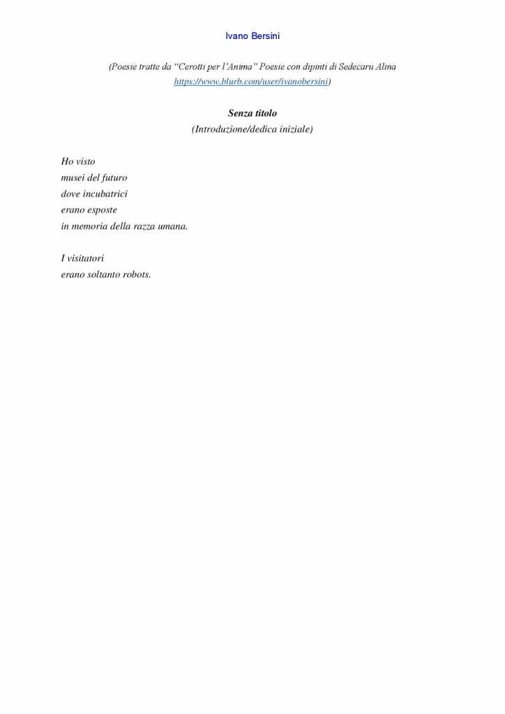 Sezione B (da “Emozioni”  di Ivano Bersini – StreetLib 2020)